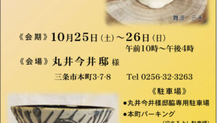 展覧会 第51回 三条陶芸会 陶芸展 会期 / 2025年10月25日(土)〜26日(日)時間 / 10:00〜16:00会場 / 丸井今井邸 三条市本町3-7-8 TEL 0256-32-3263出品作家:捧 徳弘、伊藤 幸子、大橋 信義、難波 三夫、桜井 清美、旅河 正也、... 2025.09.30 展覧会