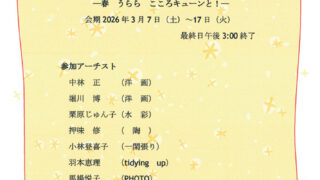 会期:2026年3月7日(土)〜3月17日(火) 水曜定休時間:9:30〜16:00 最終日15:00終了会場:ギャラリー やまぼうし 新潟市秋葉区あおば通1-10-9URL: